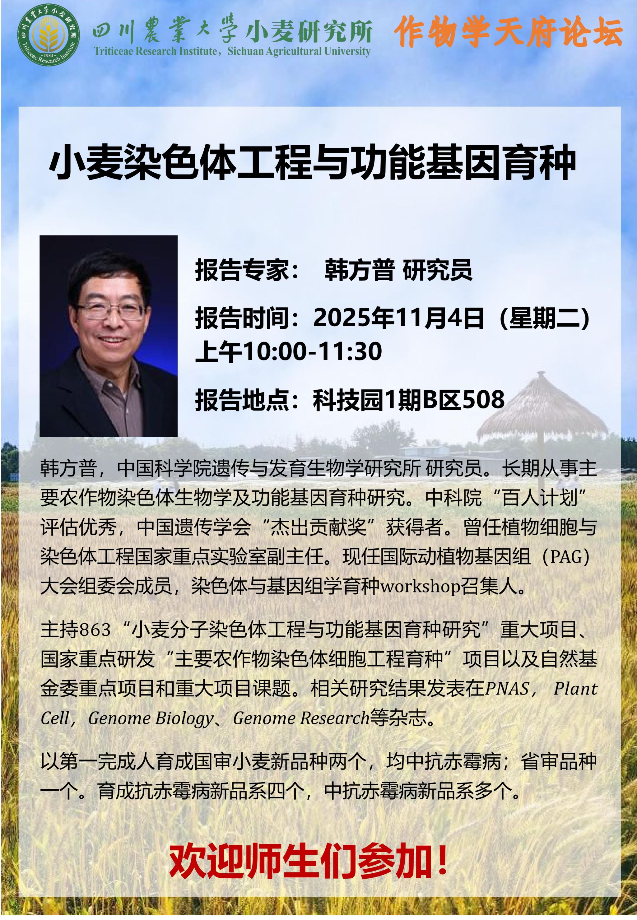 ▸四川农业大学小麦研究所诚聘海内外英才公告