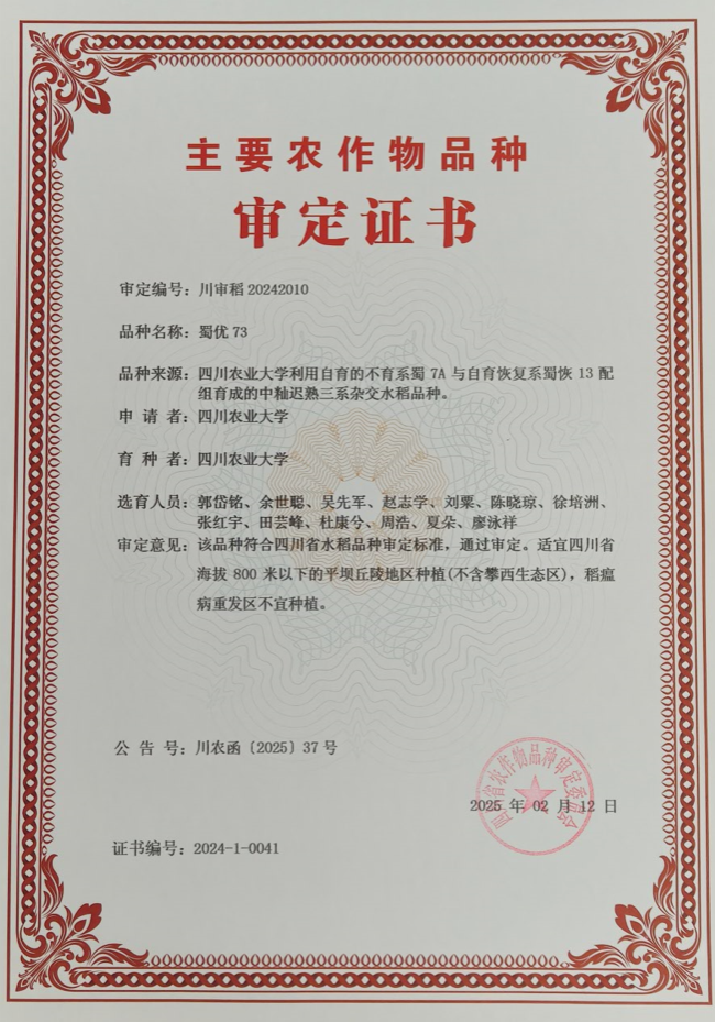 蜀优73(2024年四川审定)